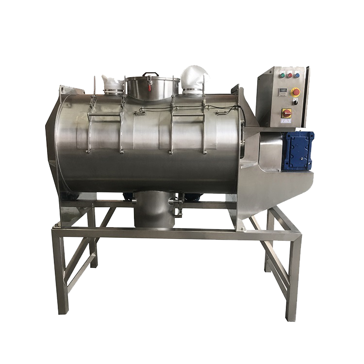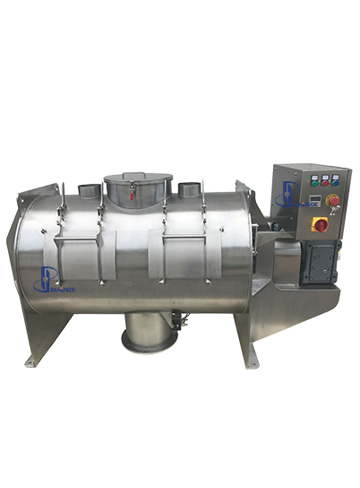 犁刀式混合機由圓形筒體、傳動機構、犁刀、飛刀、出料裝置等部分組成,犁刀混合機內的犁刀隨主軸旋轉使物料沿筒臂作徑向圓周湍動,同時徑向物料沿線流經飛刀組,被高速旋轉的飛刀拋散,不斷更迭、復合使,物料在較短時間內達到混合均勻。